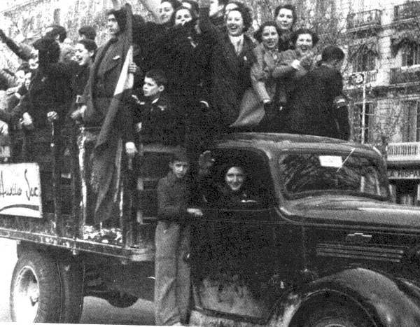Los soldados eran abrazados, apretujados. Se besaban las banderas, los muchachos se subían a los camiones, a los tanques. Se cantaban himnos, se saltaba, se bailaba.
