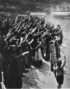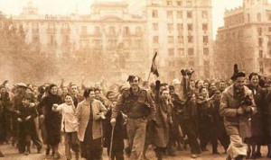 Todo vestigio de autoridad ha desaparecido de la calle. Como sea que la población está hambrienta y sabe que en Barcelona hay muchos alimentos acumulados para uso y disfrute de los jerifaltes rojos, proceden a asaltar los almacenes. No hay guardias y si quedaba alguno seguramente se sumó al saqueo. Las gentes transportan sacos de garbanzos, de alubias, de azúcar, botes de leche condensada y de carne soviética.